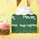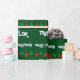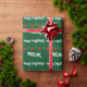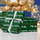 Glossy wrappingpaper with personalised name. Red and green coloured Merry Christmas lights wrapping paper for men women and kids. Playful Holiday design with colourful hanging light bulb balls and custom seasons greeting message. Personalizable with name of adult or child. Fun giftwrap with Xmas decorations. Dark green or custom background colour. Funny typography letters.