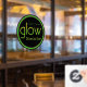 A neon green with a black background hair blowout bar retail business window cling sign that can be customised with your name on it. Need one with your company name in neon? Contact me.