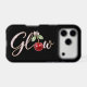 Elegant phone case with “Glow” typography and a jewel-style red cherry for a bold, fashionable look.