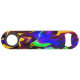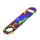 This beer bottle opener is like a party in your hand.  It is a glow stick rave fire stick rainbow show.  The colours bend and blend in neon lights on a black background.  The multicolored yellow, blue, green, purple, red, and pink will blow your mind and bend your imagination.