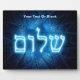 Glowing blue and white Hebrew text reading, "Shalom" (שלום - peace) superimposed on an elegant, blue, etched-look fractal image of a Star of David.