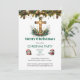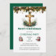 Celebrate the season with this beautiful Christian-themed Christmas invitation, perfect for gathering loved ones in the spirit of faith and joy. Featuring a glowing cross wrapped in colourful Christmas lights and adorned with festive greenery, acorns, and shimmering gold and silver ornaments above, this design embodies the heart of Christmas. Two charming hedgehogs in Santa hats add a playful touch, holding cups of coffee or hot chocolate, bringing smiles and warmth to the invitation. Fully customisable with event details, including date, time, and address, this invitation makes it easy to create a truly personalised invitation for your holiday gathering. Ideal for those who cherish the religious meaning of Christmas and want to share that sentiment with family and friends.