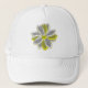 This pretty white floral hat features a digital image of a daisy flower with white and yellow coloured petals with a yellow centre. The petals look like they are glowing with a beautiful reflective quality. It would make a perfect hat to wear while playing tennis and the colours of the flower even match the colours of a tennis ball. This hat is definately in not out.