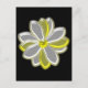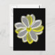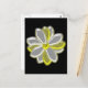 This pretty floral postcard features a digital image of a daisy flower with white and yellow coloured petals with a yellow centre. The petals look like they are glowing with a beautiful reflective quality. The flower is on a black background for maximum contrast and the result is stunning.