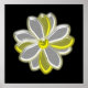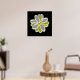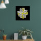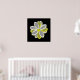 This brilliant floral print features a digital image of a daisy flower with white and yellow coloured petals with a yellow centre. The petals look like they are glowing with a beautiful reflective quality. The background colour is black for maximum contrast and the result is stunning. A yellow border completes the design. This print is available in several different sizes, the largest of which is shown here.