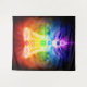 Wall tapestry of Glowing with their respective colours, Qi energy gates, chakras of human body esoteric conceptual art. Yoga and meditation.. Colourful illustration on black background. Unauthorised use is prohibited. Copyright Alex Maxim / Maximimages.com