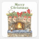Glowing Fireplace Christmas Square Sticker