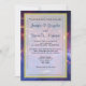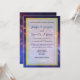 Out of this world cosmic wedding invitation. A colourful and luminous photograph of a galaxy. A combination of bright colours and ethereal plasma formations make this beautiful outer space photo a pleasure to behold. A mixture of vivid purples blues orange and red all swirling and mixing together with some glowing accents scattered around creates a wonderful abstract image. Enter your wedding details in a white semi-transparent overlay with a gold double border.