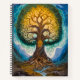 Glowing Gold Blue Yggdrasil Fantasy Tree Art Notebook