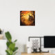 Scenic Halloween wall art features an AI generated graphic of a haunted mansion with glowing orange skies, Jack o' lanterns, bats and scary dead trees. Available in print and digital download format