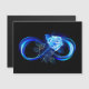 Luminous infinity symbol with glowing, beautiful, lushly blooming rose made of blue flames on black background.