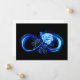 Luminous infinity symbol with glowing, beautiful, lushly blooming rose made of blue flames on black background.