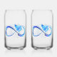 Glowing infinity with blue rose can glass