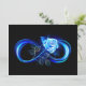 Luminous infinity symbol with glowing, beautiful, lushly blooming rose made of blue flames on black background.