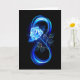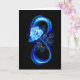 Luminous infinity symbol with glowing, beautiful, lushly blooming rose made of blue flames on black background.