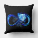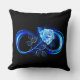 Luminous infinity symbol with glowing, beautiful, lushly blooming rose made of blue flames on black background.