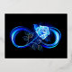 Luminous infinity symbol with glowing, beautiful, lushly blooming rose made of blue flames on black background.