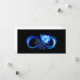 Luminous infinity symbol with glowing, beautiful, lushly blooming rose made of blue flames on black background.