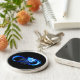 Luminous infinity symbol with glowing, beautiful, lushly blooming rose made of blue flames on black background.