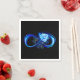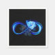 Luminous infinity symbol with glowing, beautiful, lushly blooming rose made of blue flames on black background.