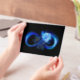 Glowing infinity with blue rose vellum invitations