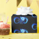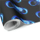 Luminous infinity symbol with glowing, beautiful, lushly blooming rose made of blue flames on black background.