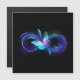 Infinity symbol with magical, purple glowing butterfly with transparent wings, on black background. Glowing butterfly.