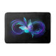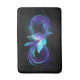 Infinity symbol with magical, purple glowing butterfly with transparent wings, on black background. Glowing butterfly.