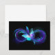 Infinity symbol with magical, purple glowing butterfly with transparent wings, on black background. Glowing butterfly.