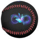 Infinity symbol with magical, purple glowing butterfly with transparent wings, on black background. Glowing butterfly.
