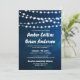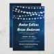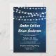 Glowing Light Strings on Deep Blue Bokeh Wedding Invitation