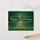 Our happy holidays design features a Christmas tree made of glowing gold lights and a gold swirl garland set on a rich green background. This modern holiday theme is a classy way to wish your family and friends a glowing holiday season and a promising New Year.