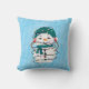The front of the pillow features an endearing snowman tangled in glowing lights, radiating the festive charm of the holidays. On the back, the theme continues, showcasing a snowman juggling snowballs, a snugly dressed snowman in warm winter gear, one enjoying a cup of hot cocoa, and two snowmen engrossed in a heartwarming story. With its colour palette of bright red, cobalt blue, dark teal green, white, and frosty blue, this throw pillow infuses a festive charm into your holiday decor. Its adorable, sweet, fun, and festive design is the ideal way to add warmth and joy to your holiday celebrations.