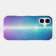 This phone case features a dreamy design that captures the mystical beauty of the cosmos. It's chraacterised by a beautiful gradient that shifts from deep blue to romantic purple and then to vibrant pink. The countless sparkling stardust scattered across the surface make it look like a real night sky. A single, glowing pillar of light piercing the centre, reminiscent of the Milky Way or a shooting star, invites the viewer into a world of dreams.