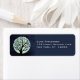 Address labels with a spooky halloween themed graphic. A large full moon glowing brightly set behind an old dead craggy tree with crows sitting on its branches. Many birds flying around the deep blue star speckled sky.