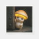 A cute, smiling creature with a glowing mushroom cap is peeking from behind a rustic wooden door.
