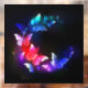 Fluttering in circle, luminous, bright, neon night butterflies on black, luminescent background. Night butterflies.