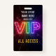 Glowing neon rainbow VIP all access event ID Badge