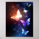 Night glowing butterflies on a dark abstract background. Night butterflies. Design with butterflies.