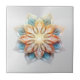 This modern tile features a three dimensional colourful mandala on a matte silver background.