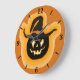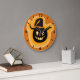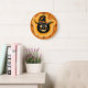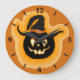 Glowing Pumpkin Witch On Orange Round Clock