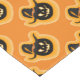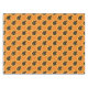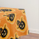Tablecloth table cover and home furnishing decor accessory with Glowing Pumpkin Witch On Orange background artwork design image by TheFabricSeal at Zazzle with a blackened black silhouette of a creepy looking witchy pumpkin wearing a witch’s pointed conical crown hat and buckle strap with a flaming fiery white hot golden orange fire glow behind it in the background and through the carved out pumpkin eyes, nose and mouth.