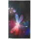 Glowing, flying, red dragonfly, with transparent, detailed wings on dark, nocturnal, luminous background with tropical plants and fireflies. Red dragonfly.