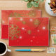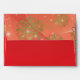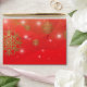 Personalised Christmas envelope design featuring gold snowflakes and glowing lights on a gradient red background. The text is fully customisable. To change it use the Personalise option. For more changes, such as changes to the font, font colour or text layout, use the Edit design tool option.