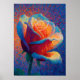 Colorful pointillist painting of a radiant blooming rose. Thousands of vibrant dots create a luminous neo-impressionist floral composition filled with warm light and delicate petals.