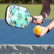 Glowing Turquoise Wheel On Black Abstract Pickleball Paddle