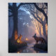 Twilight woodland where intricate wooden animals watch over shimmering golden pools beneath magical blue-violet skies. Perfect for those who love dreamy, nostalgic landscapes and storybook folk art. High-quality giclée print, perfect for living room or study decor.