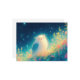 This enchanting postcard features a blissful, white-feathered owl nestled in a vibrant field of pink wildflowers. The artwork is rendered in a dreamlike watercolor style, utilizing a deep indigo and turquoise night sky filled with shimmering stars. The owl emits a warm, magical glow that illuminates the surrounding blossoms and lush green foliage. With its peaceful atmosphere and ethereal lighting, this piece captures a moment of pure cosmic wonder. This postcard is perfect for sending a note of magic, a sweet birthday greeting, or a "thinking of you" message to any owl lover.