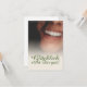 Kompliment Karte mit lachendem Frauengesicht und handschriftlichen Grüßen auf der Vorderseite der Karte. Restliche Flächen stehen zur freien Verfügung.