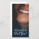 Kompliment Karte mit lachendem Frauengesicht und handschriftlichen Grüßen auf der Vorderseite der Karte. Restliche Flächen stehen zur freien Verfügung.